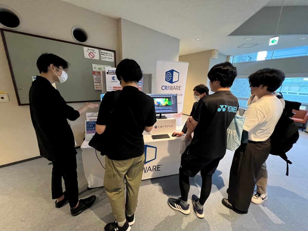 VCには17社の企業がスポンサーとして参加。1階と3階のブースでは、最新技術や制作コンテンツが紹介され、参加者は実際に触ったり質問したりと、会場のあちこちで笑い声や会話が弾んでいました。