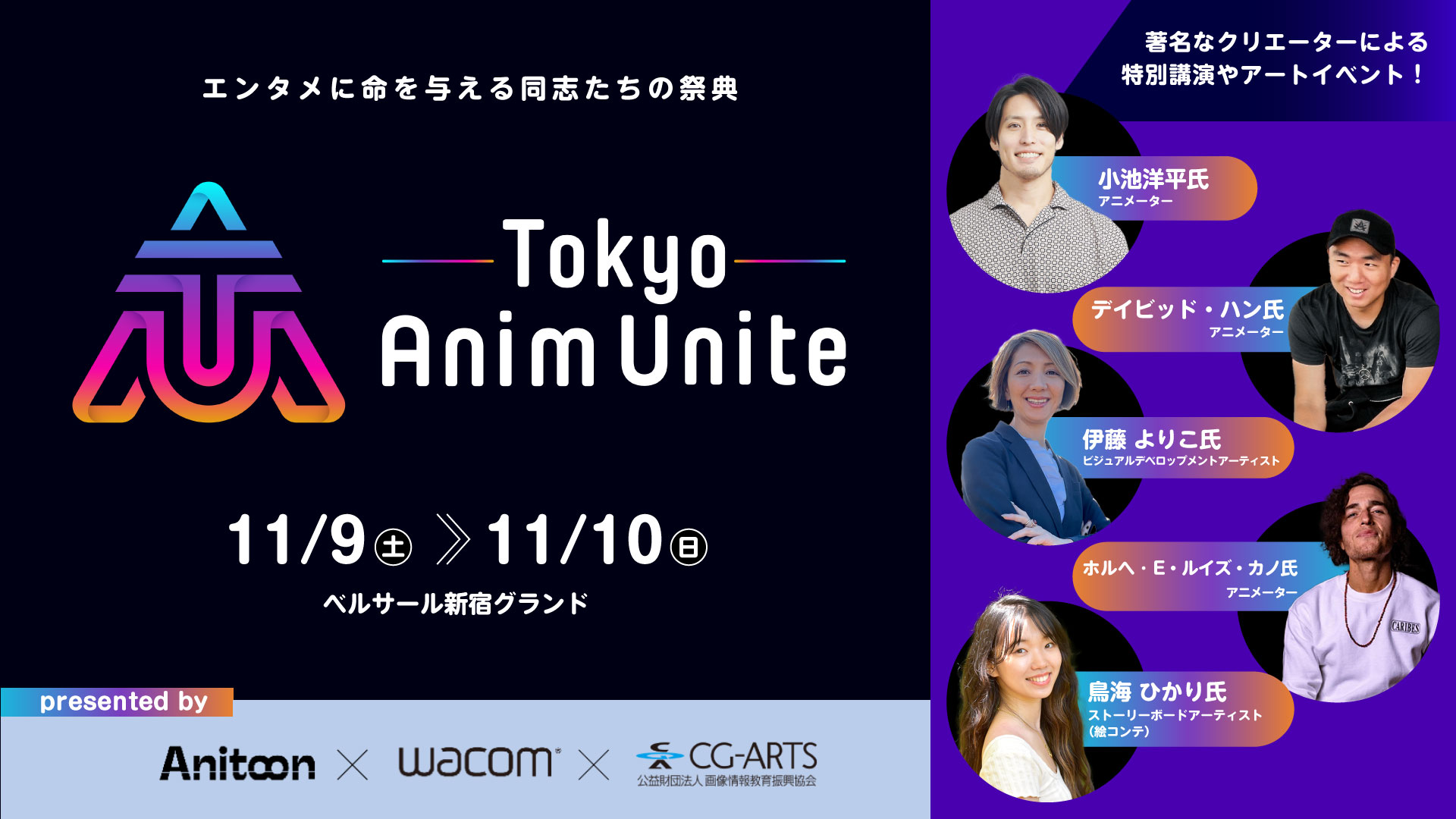 Tokyo Anim Uniteでは、アニメーション業界/ゲーム業界を支えるプロフェッショナルからアートを学ぶ学生まで、多岐にわたる参加者が一堂に会し、学びと創造の喜びを共有する特別なイベントとなります。