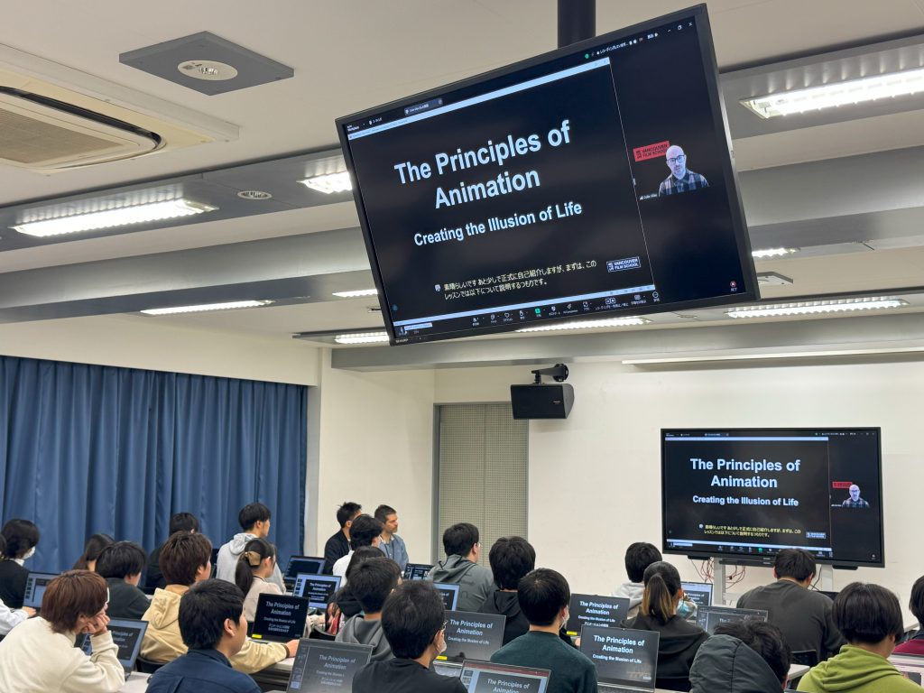 2024年10月には、VFSのCGアニメーションの専門家であり、3D Animation & Visual Effects コースの責任者を務めるコリン・ビーデル氏による「Principles of Animation(アニメーション12原則)」の特別講義を実施しました。