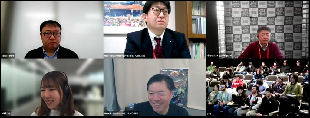 続いて、2025年1月には私どもサイバーズからも、日本独自のアニメCG制作技法を紹介するオンライン授業をVFS在校生向けに提供しました。講師は、本校の国内教育連携先である株式会社ウタリカ取締役、かつ株式会社サンジゲン代表取締役の松浦裕暁氏が務めていただき、「日本スタイルのアニメ制作」をテーマに講義を行いました。
