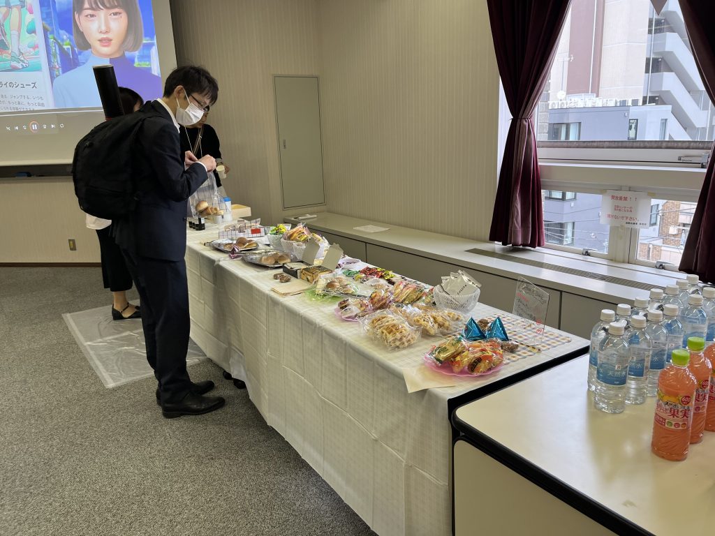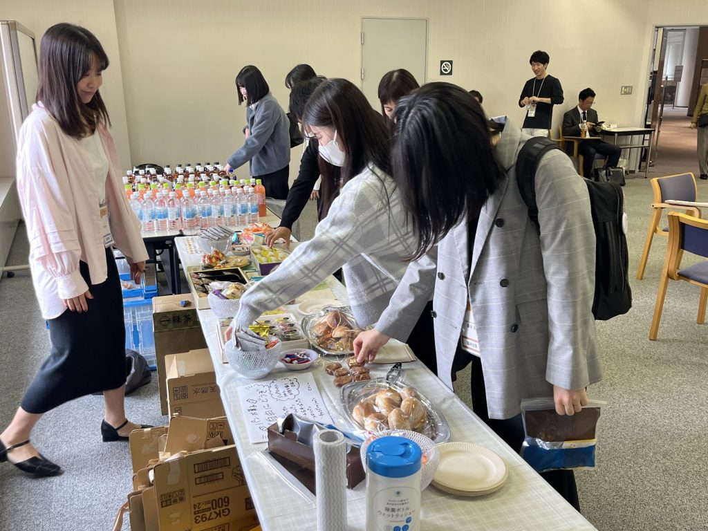 会期中、3階第二会議室ではコーヒーブレイクコーナーを設置。温かいコーヒーをはじめさまざまな種類の飲み物と、パン・お菓子を並べました。発表の合間に休憩しながら参加者のみなさまが快適に過ごせるように努めました。第二会議室では株式会社アイシンさんのデモ映像を上映しておりました。