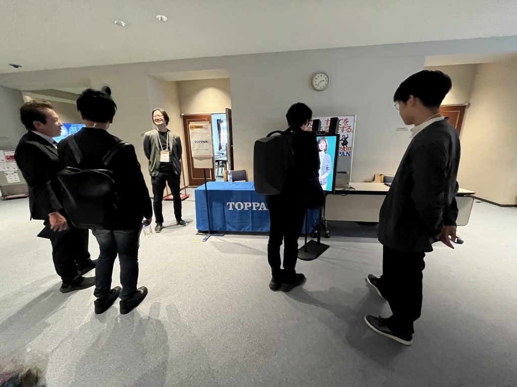 同時に、ホワイエではスポンサー展示が行われ、多くの企業がパネル展示や実機を用いたデモンストレーションを通じて参加者がより理解を深めることができ、相互理解して活発なコミュニケーションが取れている印象でした。似顔絵コーナーも設置され参加者たちで列ができるほど盛況でした。